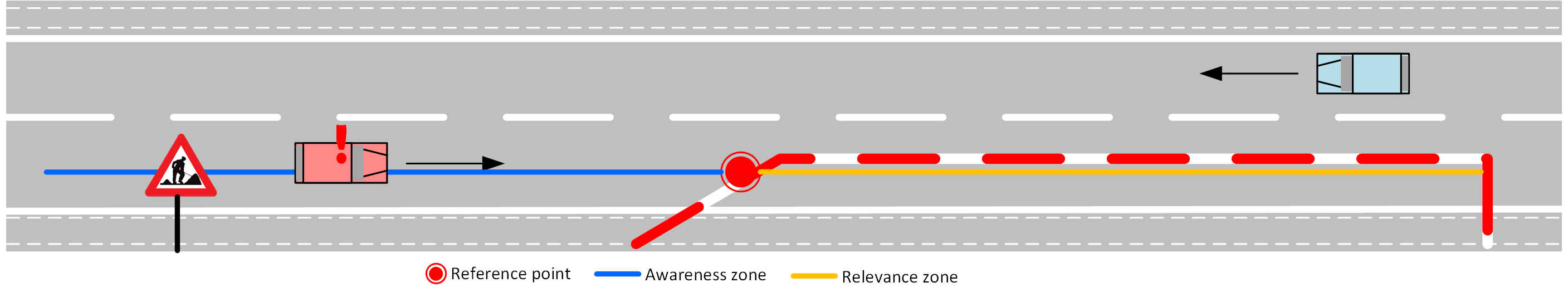 In this use case, warnings are made for static roadworks that cause disruption to traffic. The road is partially or completely closed. Fixed location, so not including the crash absorber accompanied mobile road works.